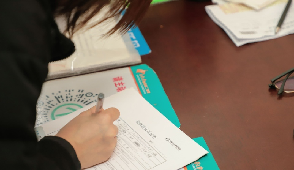 劉女士女兒現(xiàn)場簽署角膜捐獻確認書。